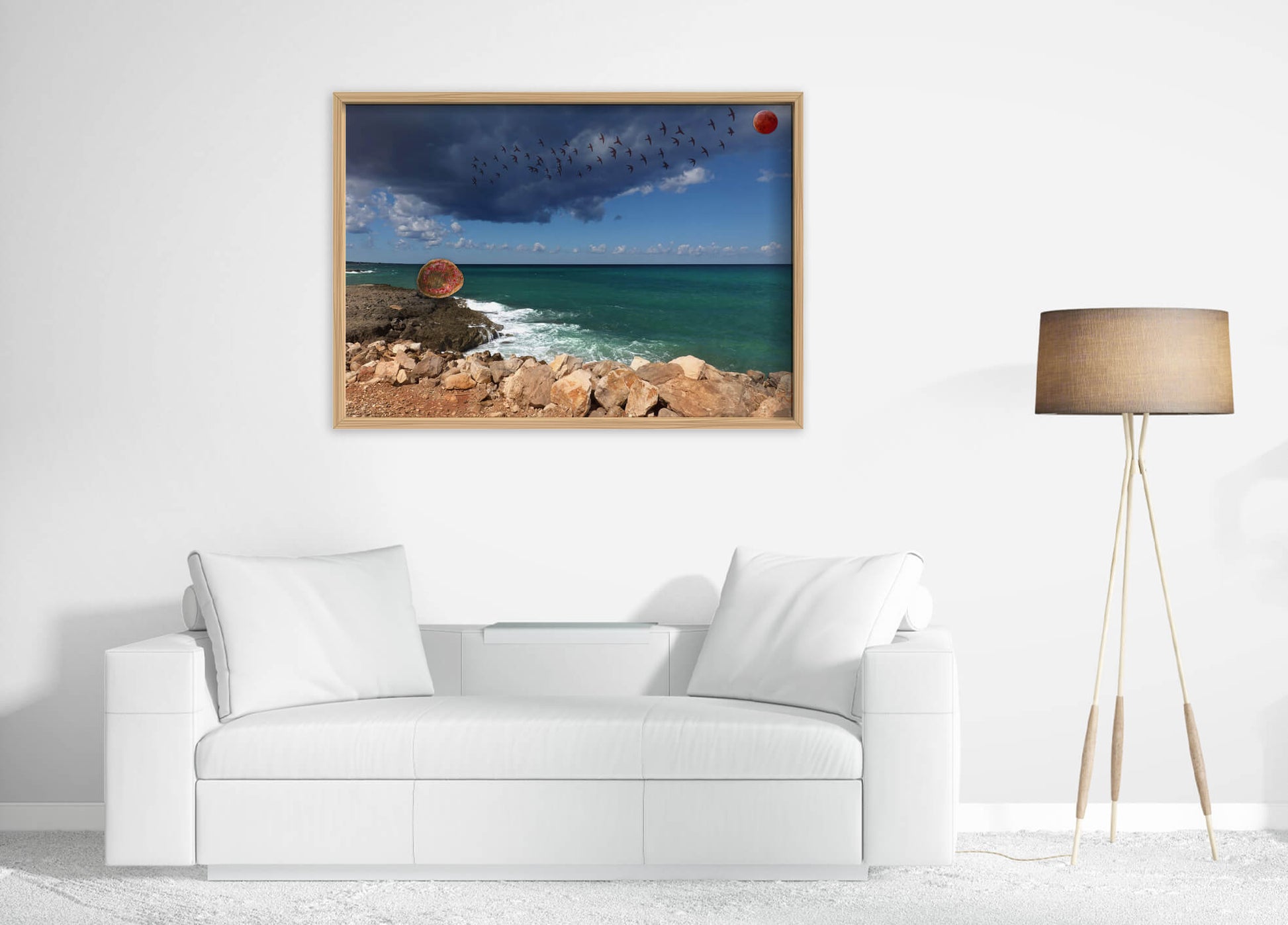 - Stampa di alta qualità su alluminio con cornice in legno.