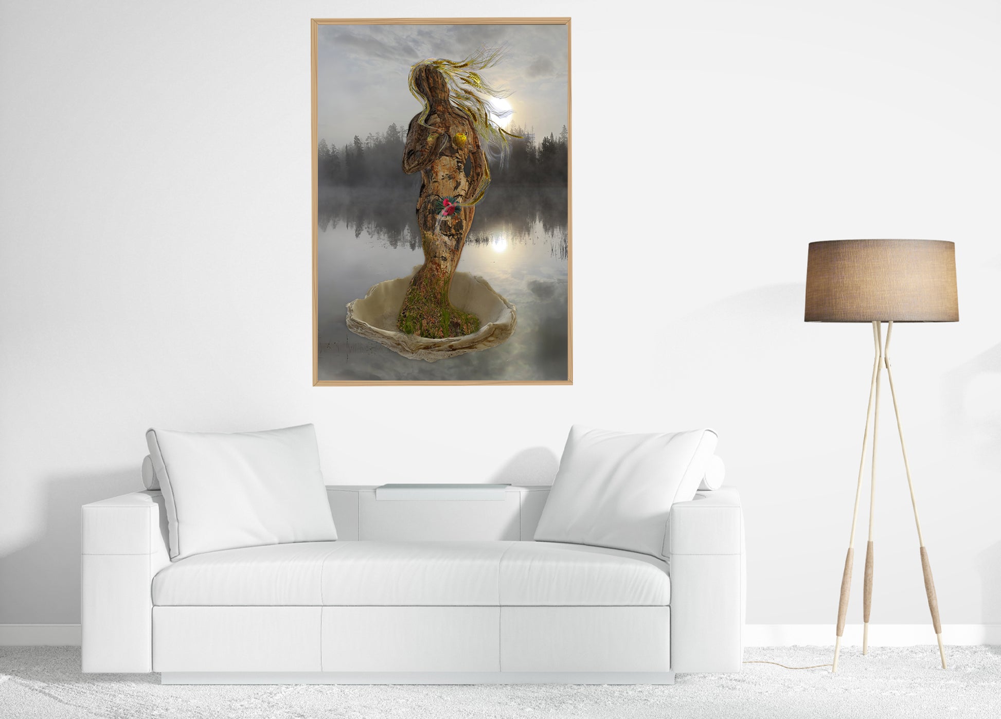 Come Venere emerge dalle acque, così l'albero nasce dalla natura in una posa che richiama la grazia e la bellezza del dipinto rinascimentale. Questo collage digitale fonde arte classica e natura, celebrando l'albero come simbolo di vita, bellezza e rinascita. Un omaggio poetico che trasforma il legno in divinità vegetale.